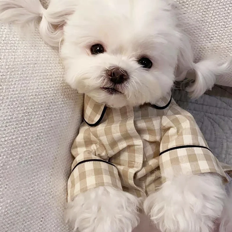 Cute Plaid Dog Shirt Summer Pet Clothes Fashion Puppy Pajamas Warm Soft Cat Household Clothes Pet Shirt Chihuahua Bichon Costume